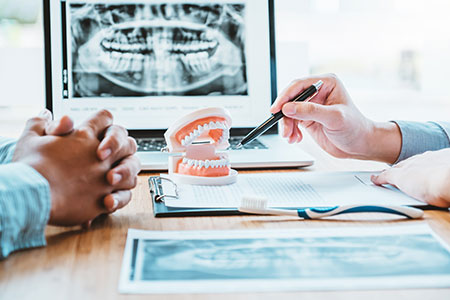 パノラマCT複合機で口腔内を立体的に把握し、神経や骨の状態を的確に診断。見えない部分まで可視化し、適切な治療へと繋げます。